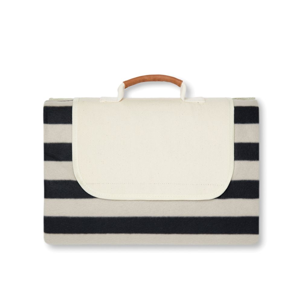 Picnic blanket in soft fleece with cotton canvas and faux leather details. The fleece is made of 100% GRS certified RPET. GRS certification ensures a completely certified supply chain of the recycled materials. The back is made in PEVA, which repels water. Clever construction makes it easy to fold up and take with you. Total recycled content: 58% based on total item weight.