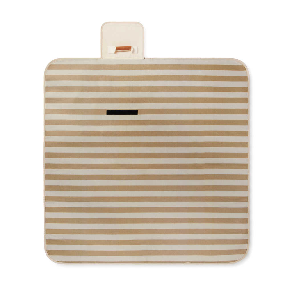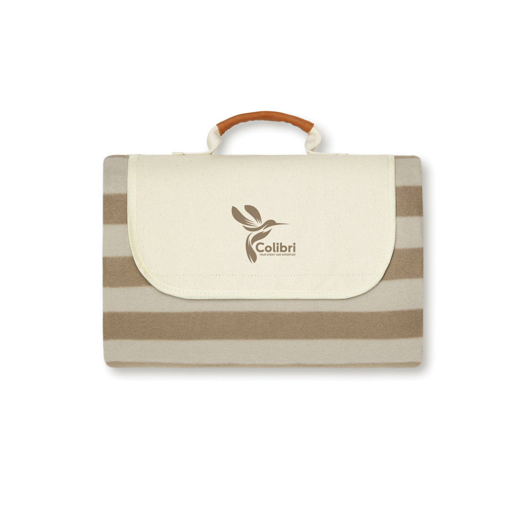 Picnic blanket in soft fleece with cotton canvas and details in PU. Clever construction makes it easy to fold up and take with you. The fleece is crafted GRS certified recycled PET. The back is made in PEVA, which repels water. Certified by GRS (Global Recycled Standard), GRS certification guarantees that the entire supply chain of the recycled materials is certified. The total recycled content is based on the overall product weight. This product contains 51% GRS recycled fleece.