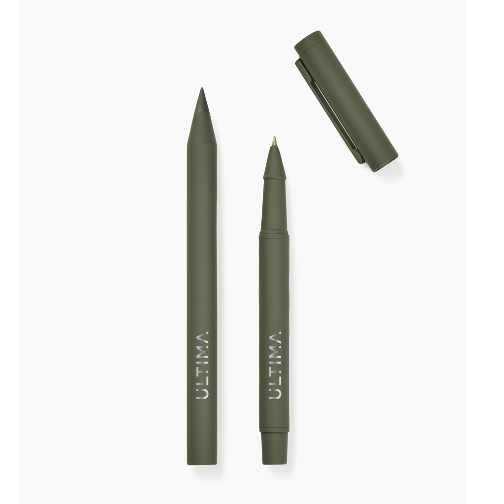 This modern and sleek set includes two pens: an eternal pen and a classic ballpoint pen with a cap and clip. Designed for both style and functionality, these pens are crafted from RCS certified recycled stainless steel, featuring a rubber surface coating for a comfortable grip and a matt finish. Both pens have a balanced weight that ensures stability and effortless writing. The eternal pen offers limitless writing. The ballpoint pen features a fine 1.00 mm tip and provides smooth, consistent writing with documental blue ink, lasting up to 1200 metres. Certified by RCS (Recycled Claim Standard), RCS certification guarantees that the entire supply chain of recycled materials is certified. The total recycled content is based on the overall product weight. This product contains 52% RCS certified recycled aluminum and 10% RCS certified stainless steel.