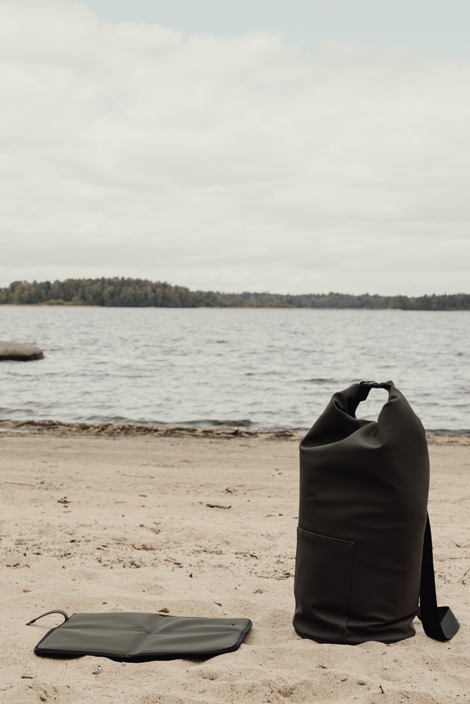 A spacious cooler bag with a modern roll-top design that combines both style and function. The top folds and rolls down to close securely, helping to keep the cold in. Features a deep outer pocket for quick access to small items and a shoulder strap for comfortable carrying. The cooler is lined with PEVA insulation to keep contents cold for longer.Certified by RCS (Recycled Claim Standard), RCS certification guarantees that the entire supply chain of recycled materials is certified. The total recycled content is based on the overall product weight. This product contains 23% RCS certified recycled polyester. Dimensions: 24 x 24 x 58 x o 24 cm