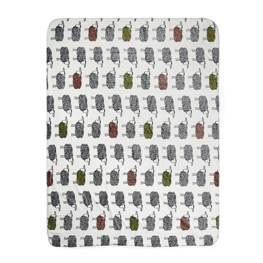 Soft and fluffy plaid in high-quality sherpa at 500 gsm. The plaid is made from 70% recycled material from PET bottles. Printed with sheep pattern designed by Björkforth Rotor and with an attractive matching grey sherpa underside. We dont like to transport air, so weve chosen to vacuum-pack this rug to reduce our carbon footprint. OEKO-TEX Standard 100 means that the fabrics used meet multiple product safety criteria. Certified by GRS (Global Recycled Standard), GRS certification ensures a completely certified supply chain of the recycled materials. The total recycled content is based on the overall product weight. This product contains 70% GRS certified recycled PET.