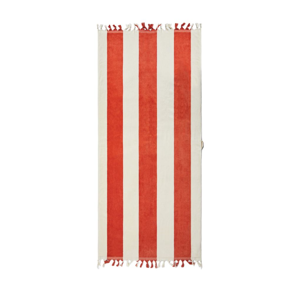 A luxurious cotton beach towel with tassels at the short ends, for days at the beach or pool. Our beach towels are made in India with 100% organically grown cotton, and have a thickness of 450 g/m2.