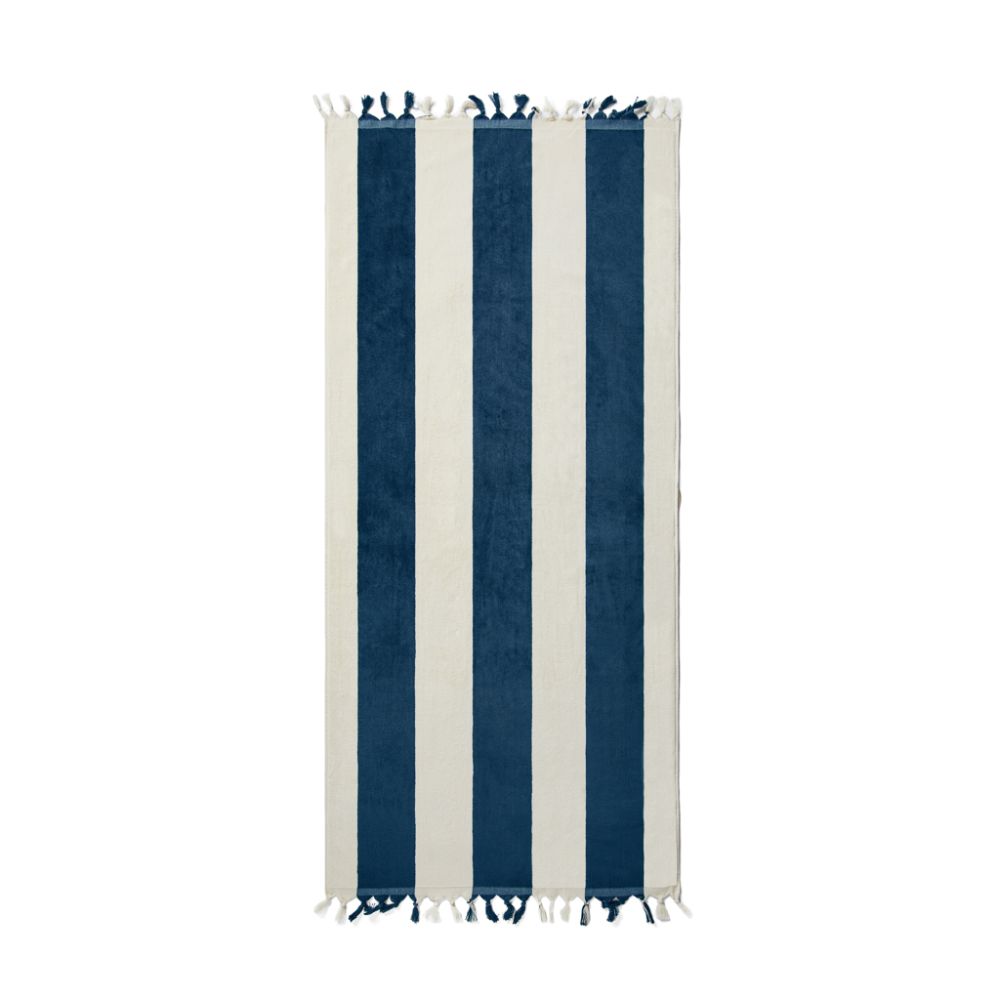 A luxurious cotton beach towel with tassels at the short ends, for days at the beach or pool. Our beach towels are made in India with 100% organically grown cotton, and have a thickness of 450 g/m2.