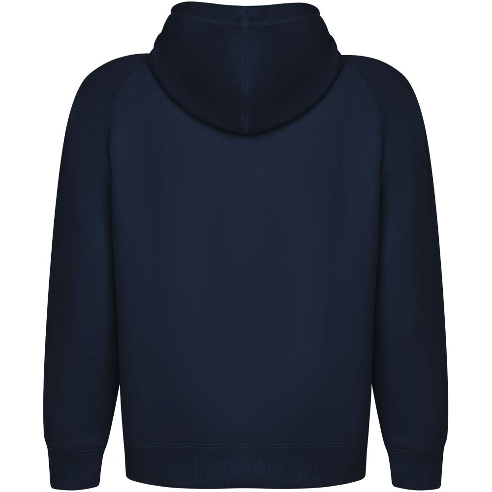 Unisex hoodie in organic cotton and recycled polyester. Kangaroo style pocket. Single jersey lining in hood. Round adjustable drawcord and embroidered eyelets. Cuffs and waistband in 2x1 ribbed fabric. Removable label. Individual recycled packing. The male model is 185 cm and is wearing size L, and the female model is 168 cm and is wearing size S.