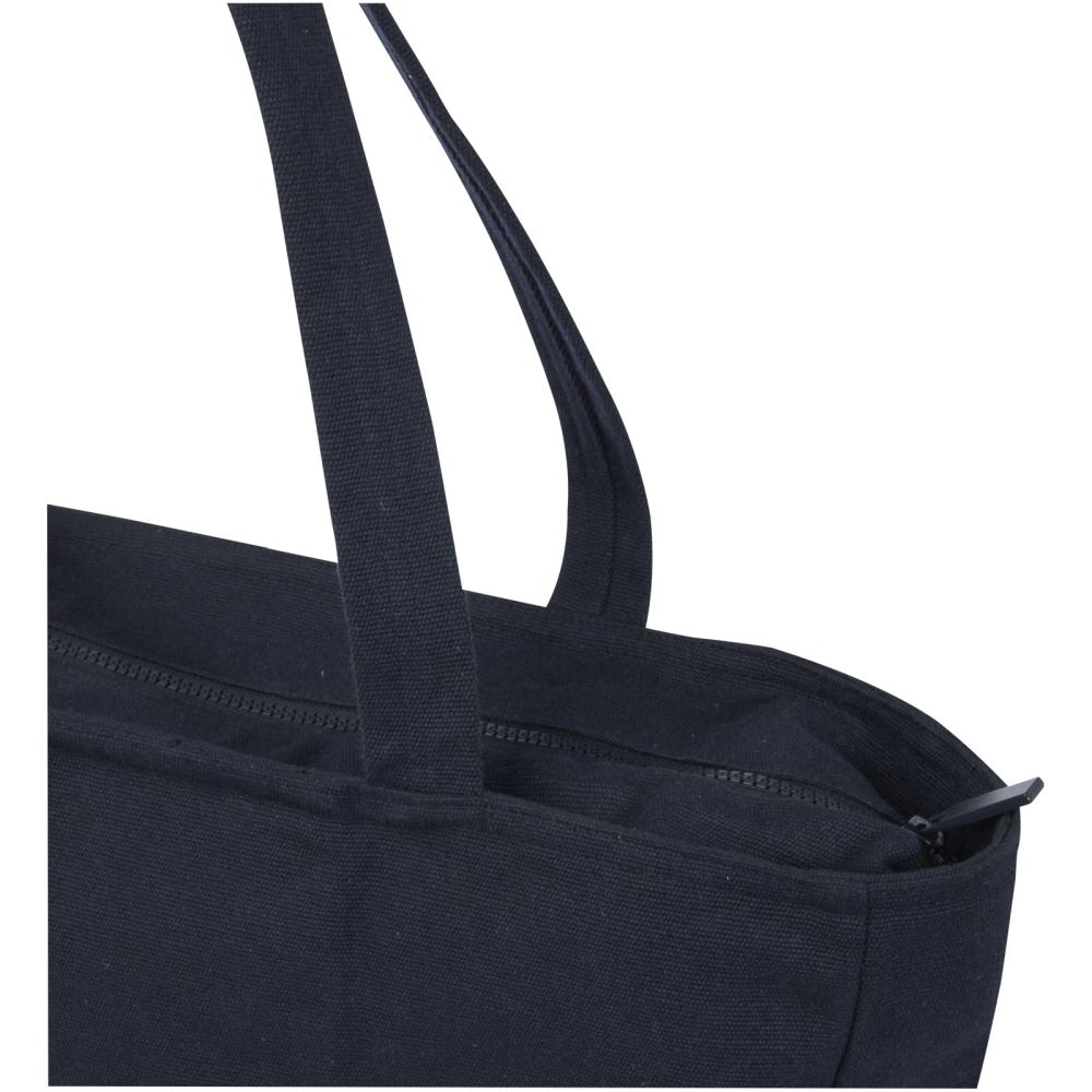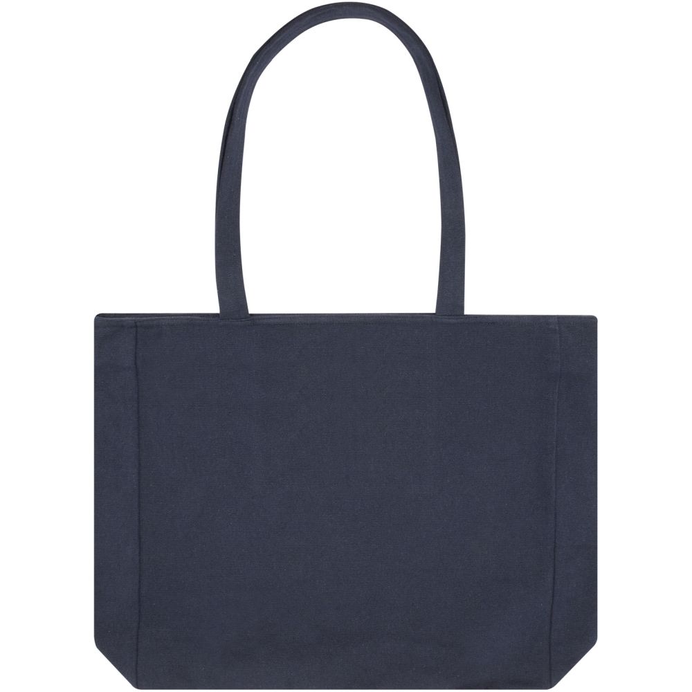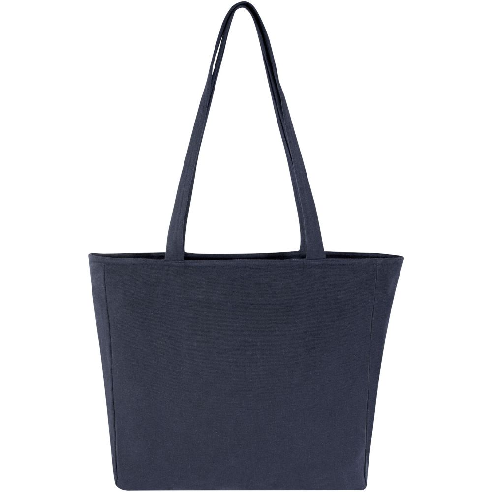 With its large capacity, the recycled Weekender tote bag is perfect to bring on a short getaway trip. The tote bag features a full length zipper, ensuring that items remain protected inside. The main compartment also holds a small pocket with zipper to use for smaller items. The tote bag incorporates Cyclo® recycled fibres where they use pre-sorted waste that determines the colour of the yarn. These fibres do not only reduce the demand for virgin resources but also exhibit a commitment to a circular life, embodying the essence of reducing waste and promoting a closed-loop system. Each bag also comes with an Aware™ tracer. This innovative feature allows users to trace the origins and journey of their item through a QR code, enhancing transparency in the supply chain and fostering a stronger connection between the product and its production process.