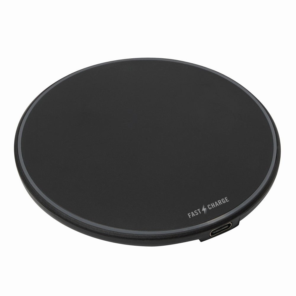 bWireless charging station CHARGE FAST/b: wireless charging of the device by placing it on the contact surface (device must be compatible with inductive charging), USB cable with Micro-USB plug (length approx. 80 cm), the ring lights up blue during the charging process and green when charging is complete, input power: 3A/9V, output power: 15W, with temperature control and foreign object detection, 4 support feet on the bottom. Dimensions: o 9,7 cm