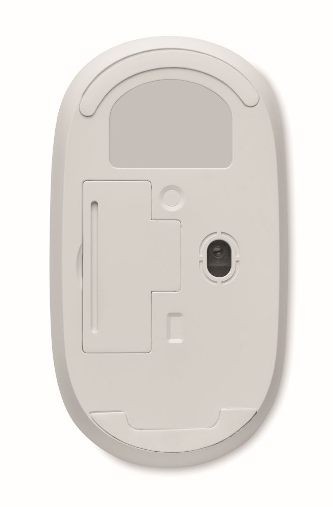 Wireless optical mouse in recycled ABS with bamboo top. 1 AA batteries not included. Bamboo is a natural product, there may be slight variations in colour and size per item, which can affect the final decoration outcome.