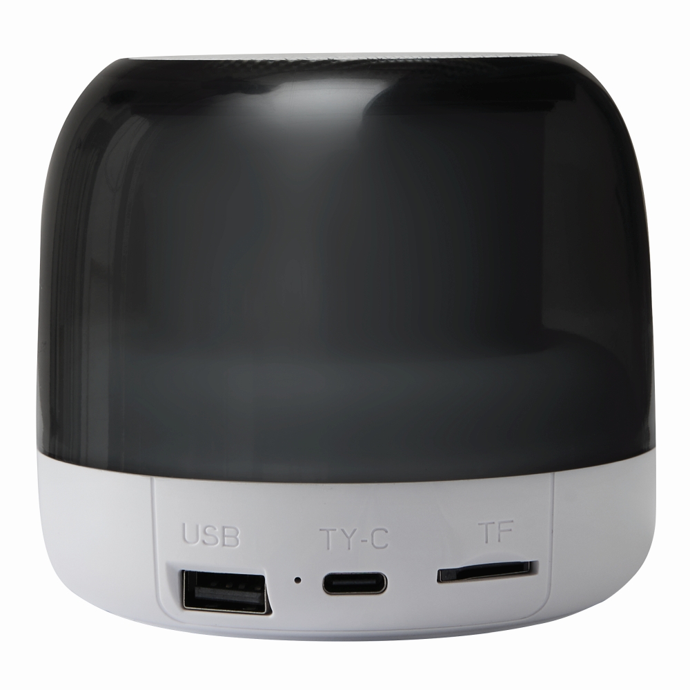Bezdrátový reproduktor světlo měnící barvu se 7 různými barvami i trvalé světlo, světlo lze vypnout, hudební výkon 5 wattů, cca. Dosah 10 m, pro spárování s mobilním telefonem, kompatibilní s Bluetooth®, vč. nabíjecí kabel (cca 50 cm, USB Type-C), microSD slot a USB Type-A pro funkci MP3, nabíjení přes USB Type-C, funkce handsfree, příkon: 5V/1A, integrovaná dobíjecí baterie s 800 mAh , protiskluzová základna