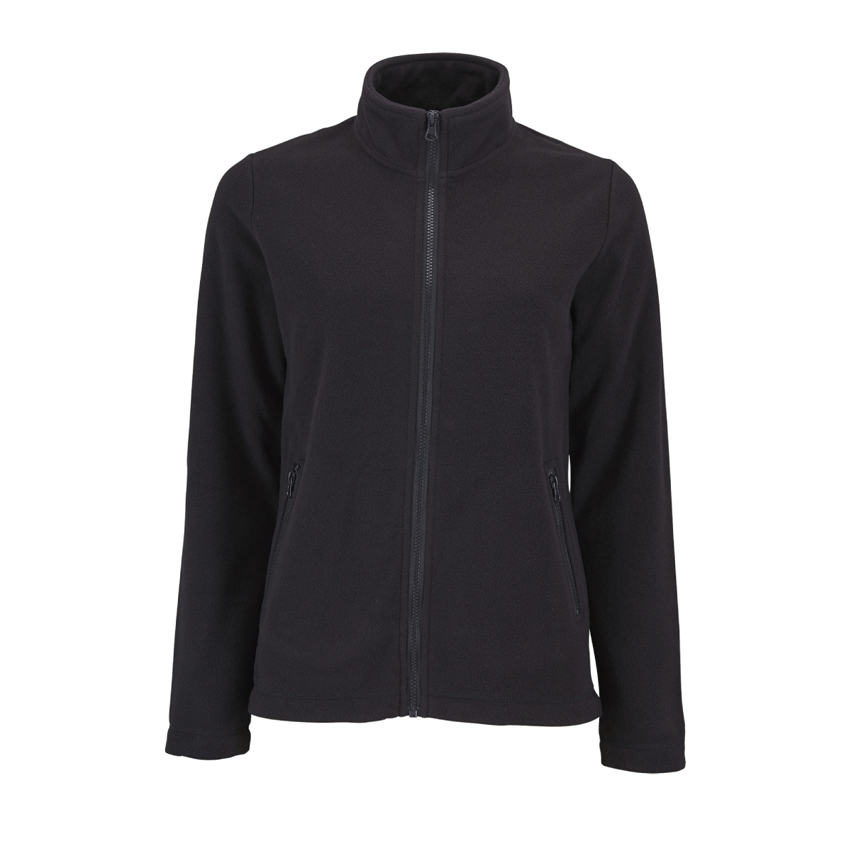 Womens fleece jacket. 100% polyester, fleeece 220. High zip collar. 2 zip pockets