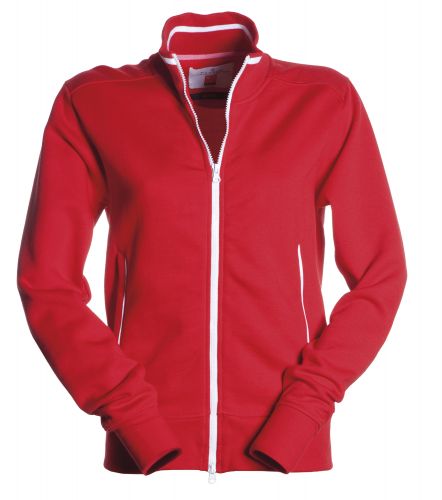 Women’s fitted sweatshirt with full, contrasting coloured plastic SBS zip with double metal pull. Rib collar with contrasting trim, side pockets with contrasting trim, fitted sleeves, two outer pockets with contrasting zip, stretch rib cuffs and hem, reinforced seams.