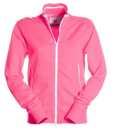 Women’s fitted sweatshirt with full, contrasting coloured plastic SBS zip with double metal pull. Rib collar with contrasting trim, side pockets with contrasting trim, fitted sleeves, two outer pockets with contrasting zip, stretch rib cuffs and hem, reinforced seams.
