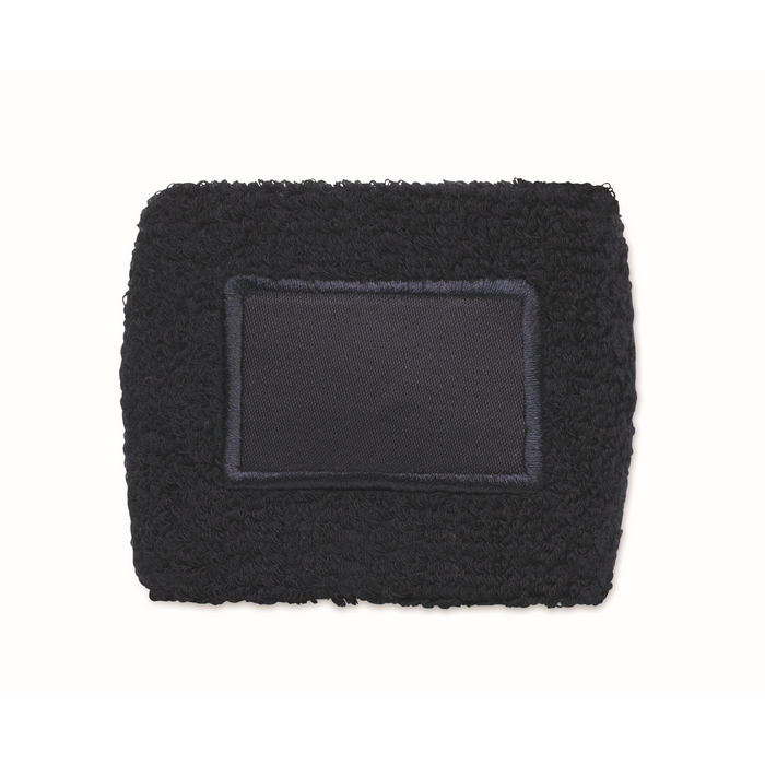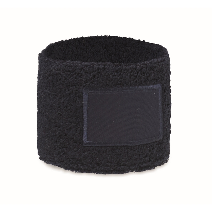 Wristband in polycotton (79% cotton/13% elastane/8%polyester) with cotton patch for printing area.Dimensions: 8 x 6cm