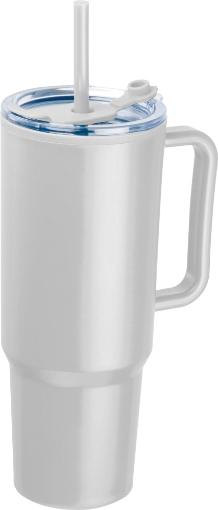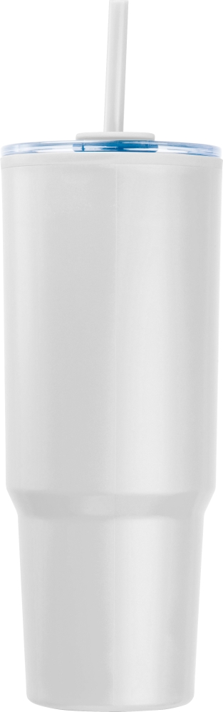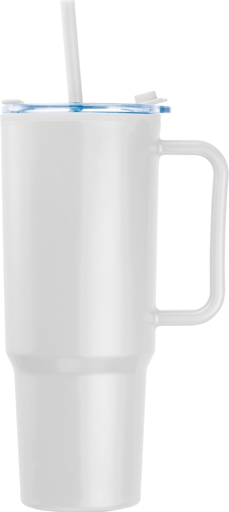 Double-walled XXL plastic drinking cup with a capacity of 1200ml, practical carrying handle and removable straw in the lid. We will print your logo on the cup. Dimensions: o 10 x 25 cm
