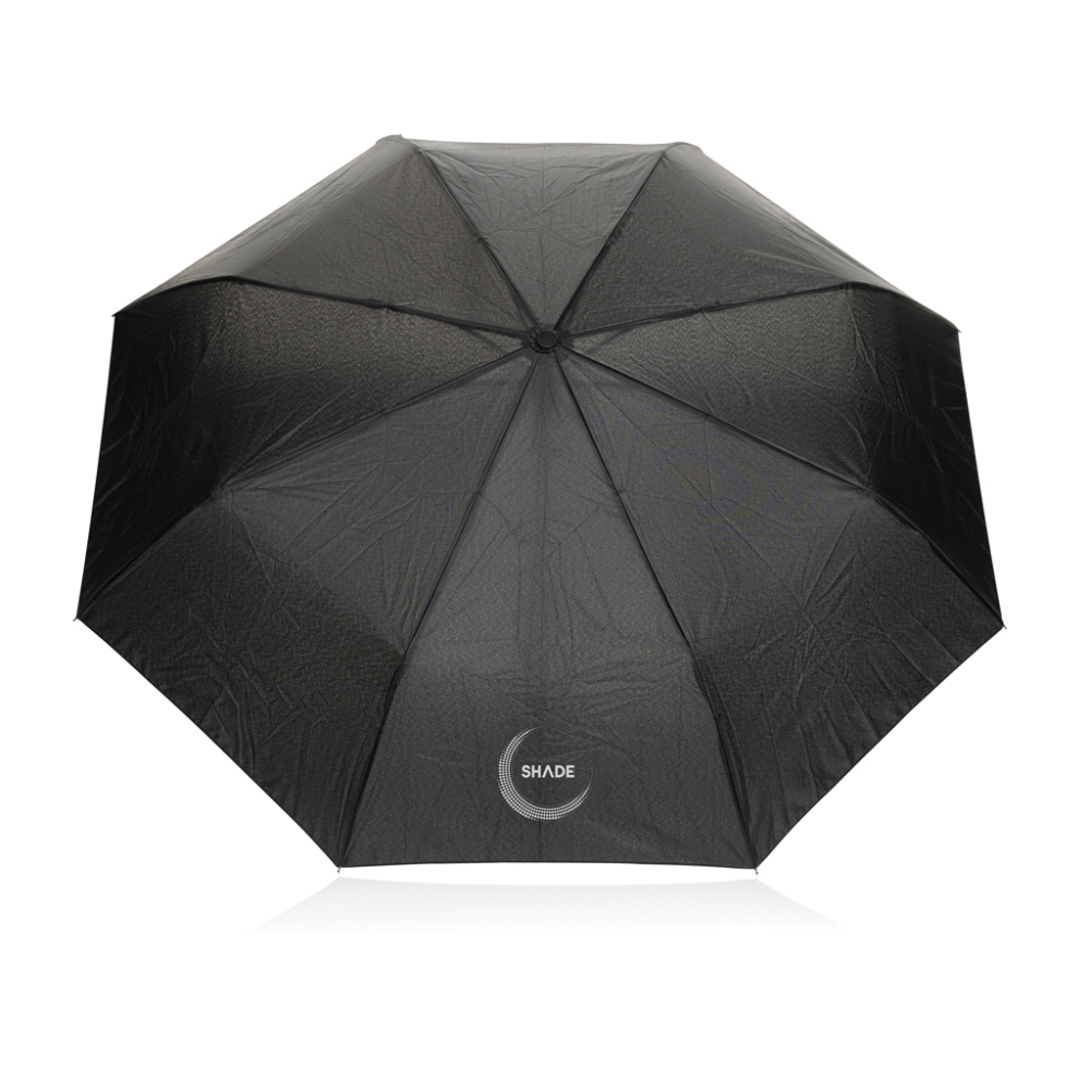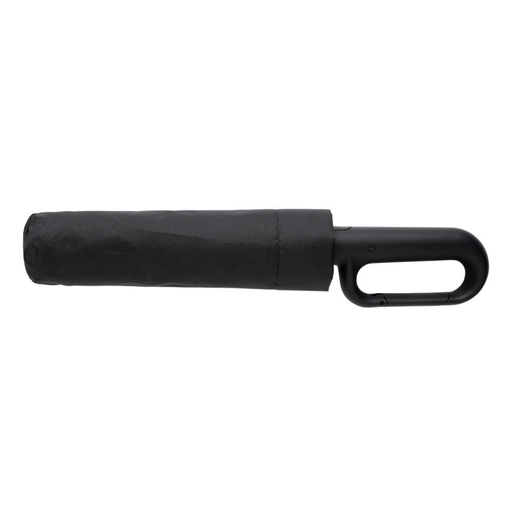 Yara 21" AWARE™ RPET solid colour umbrella with carabiner, black