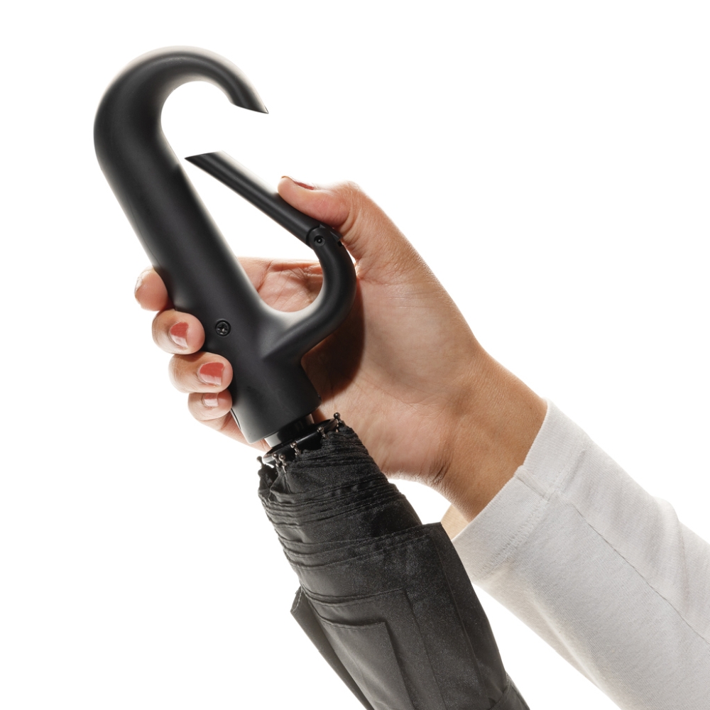 Smart and stylish, this umbrella is made to keep you dry on the go. Easy to carry, this umbrella has an auto-open comfortable grip, a windproof system that keeps the umbrella stable even in strong winds. The unique design with a carabiner handle allows yo