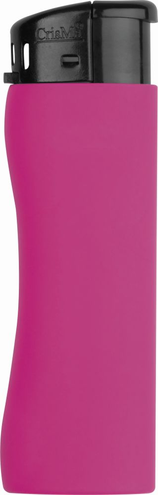 Electronic lighter in fresh colors, refillable. The flame can be adjusted continuously. The advertising will be digitally printed (multi-colored) so that it is legible for right-handers.