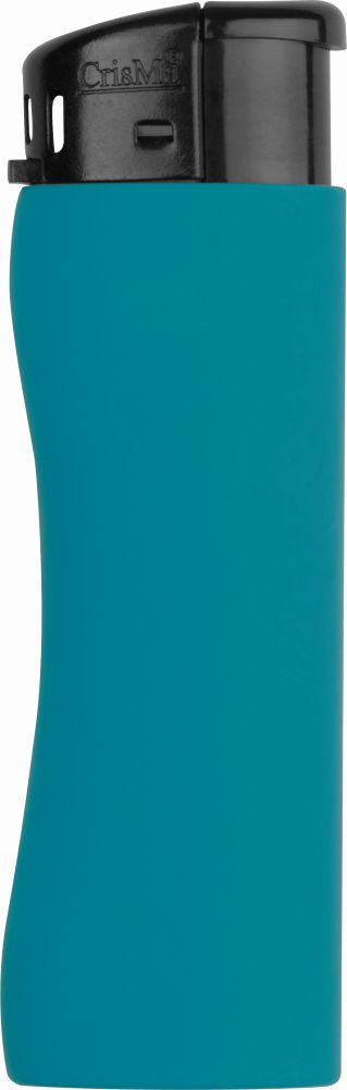 Electronic lighter in fresh colors, refillable. The flame can be adjusted continuously. The advertising will be digitally printed (multi-colored) so that it is legible for right-handers.