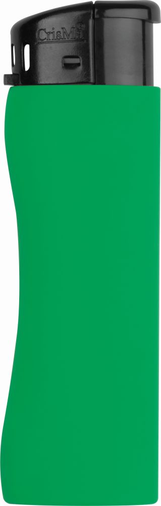 Electronic lighter in fresh colors, refillable. The flame can be adjusted continuously. The advertising will be digitally printed (multi-colored) so that it is legible for right-handers.