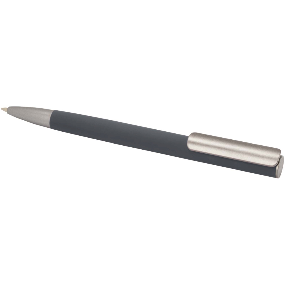 Ballpoint pen with a barrel made of recycled aluminium and a silver coated clip made of ABS plastic. Recycled aluminium reduces the amount of waste in landfills and helps to conserve natural resources aiming to reduce greenhouse emissions. Ink colour: Black. Writing length: 800 metres. Nib size: 1.0 mm. Dimensions: 14 x O 1,1 cm