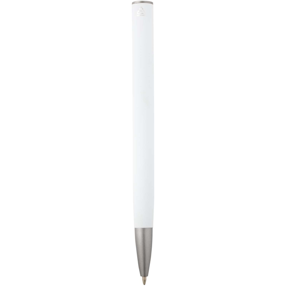 Ballpoint pen with a barrel made of recycled aluminium and a silver coated clip made of ABS plastic. Recycled aluminium reduces the amount of waste in landfills and helps to conserve natural resources aiming to reduce greenhouse emissions. Ink colour: Black. Writing length: 800 metres. Nib size: 1.0 mm. Dimensions: 14 x O 1,1 cm