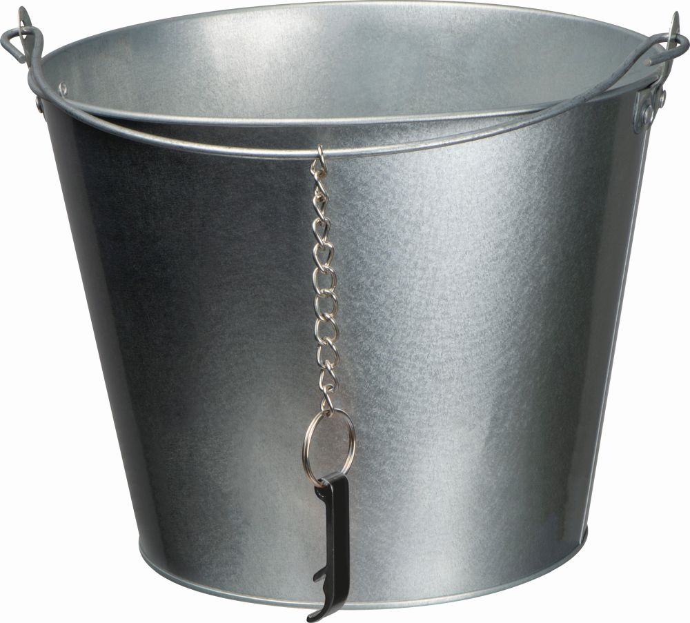 Galvanised metal bucket with aluminium bottle opener, carrying handle and a capacity of 6 litres. Ideal for barbecues or as decoration in any bar. Your logo will be engraved on the bucket.