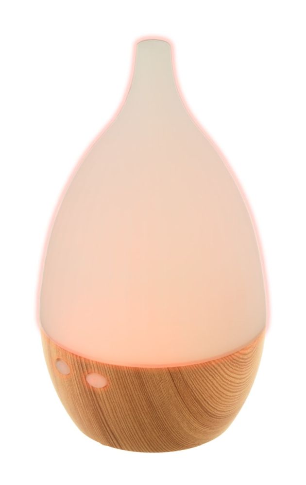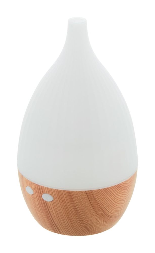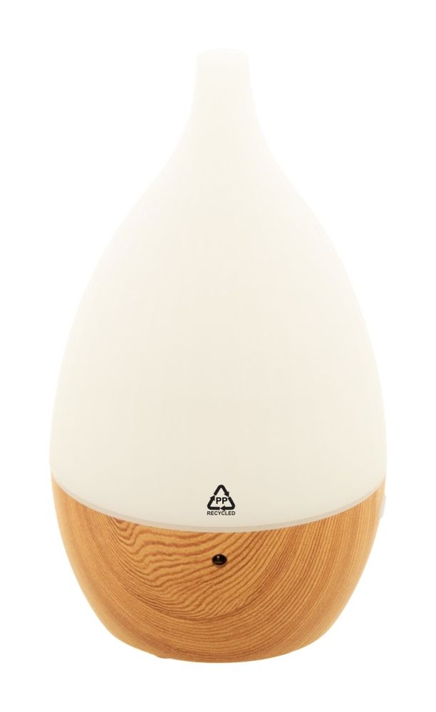 Recycled PP plastic desk humidifier with wooden pattern and multicolour LED light. Including USB charger cable. Tank capacity: 120 ml.